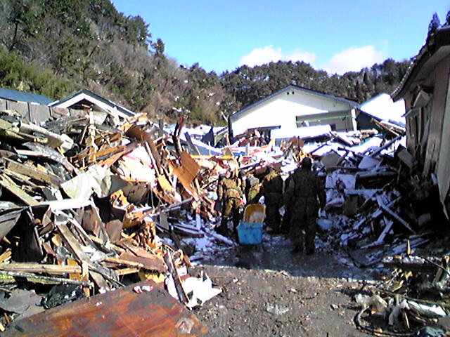 自衛隊が重機で道路確保作業で家の場所は残骸置場になりました(涙)