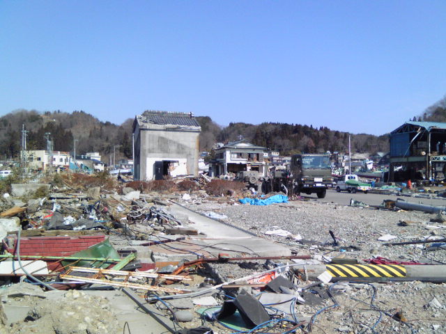 カメイ跡地。自衛隊の方々 朝から遺体捜索・瓦礫撤去してます。
