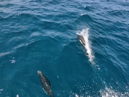 船首のとこから海面下のイルカ見ながら陸に向かって一緒に帰りました。