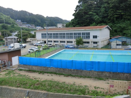鍬ケ崎小学校では、夏休みにプールがあります。