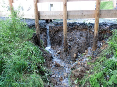 雨水が流れ掘れてます。