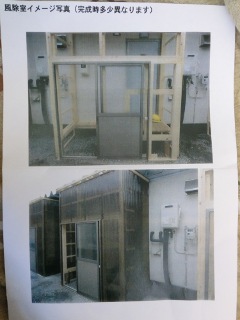 さて、今日はここの仮設住宅の風除室工事の申し込みです。