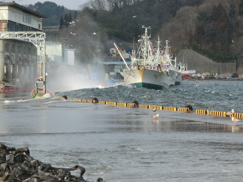 これじゃぁ、船を岸壁に横付けして魚市場に水揚げできませんよ。