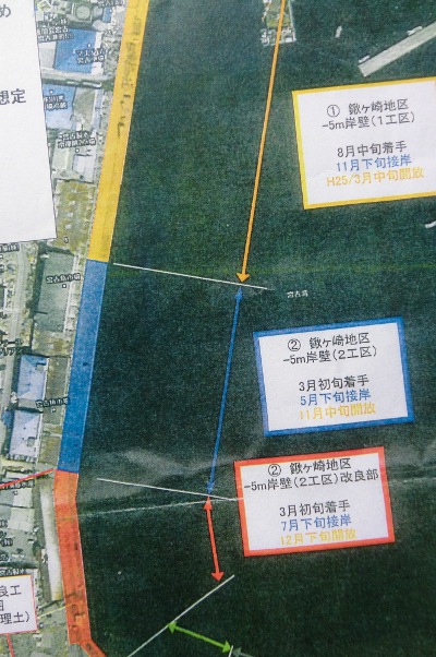一番初めは、ピンク色した岸壁区域から工事着工。