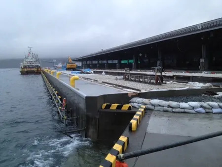 今は宮古市魚市場前岸壁を嵩上げ工事始まりました。