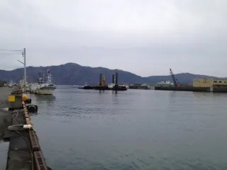 工事で岸壁側は通られないかもしれません。