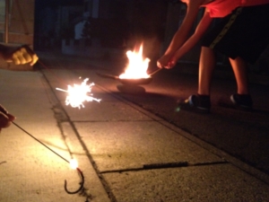 子供は松明かしより花火をすることの方が楽しみのようです。