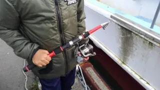 装備は、竿とリールがセットで1500円ので。