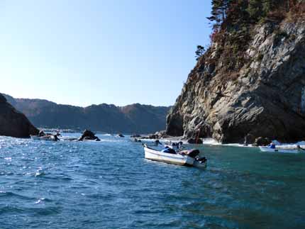 風や波がカンコになる漁場に行き、そこでアワビを採捕しました。