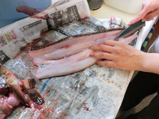 カミサンが、てきぱきと包丁を入れまして三枚おろしに。