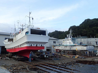 タコ漁シーズン終え、造船所に上架しドックに入ります。