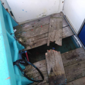 船べりから飛び降りると板子(杉板)破壊となり、