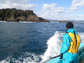 湾内から閉伊崎は、西風吹き荒れ波となりカンコに移動しました。
