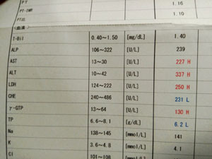 1週間前より肝機能数値下がってました。