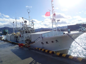 閉伊崎のオサキ様に祈願し三陸沖に出ます。