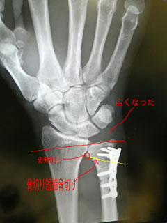 術後、尺骨短くなっているの分かるかと思います。