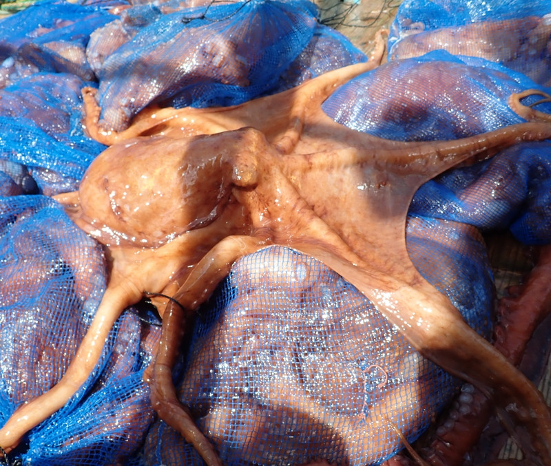 水温高くなりましたらば、タコが入ってました。