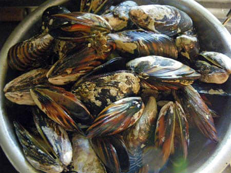 一般的に分かりやすく、ムール貝でしょうか??たぶん・・