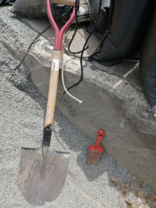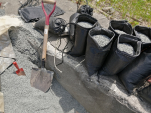 養殖にも使う重し袋に砂利を積めてと、沖の漁の重しに使います。