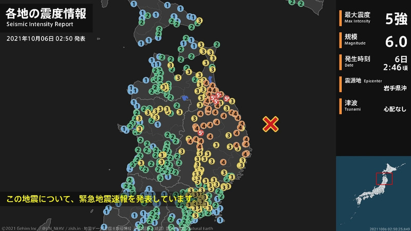 最大震度5強で 2021 10/06 日記 2021年10月6日 URLをコピーしました! 地震です。かなり強い揺れでびっくりしました。 震源地、岩手県沖。 津波来るのかと心配でしたが大丈夫でした。 結構強く揺れてびっくりしました。 あれで震度4ですか・・・・ もっと強く揺れたと感じますが なんの因果か時間帯が2時46分・・・・ あの時を思い出してしまいます 嫌だな・・・ 岩手県ランキング にほんブログ村 日記 この記事が気に入ったら いいねしてね! よかったらシェアしてね! URLをコピーしました! URLをコピーしました! ユメカサゴは美味い シュクレからのお知らせ 関連記事 クロームブックでの作業で 2026年1月4日 謹賀新年 2026年1月1日 今年も残るところ 2025年12月31日 毛ガニ漁に向けて 2025年12月27日 後発地震終了で 2025年12月16日 宮古も雪降りで 2025年12月14日 船外機の試運転をし 2025年11月8日 台風26号が出来て 2025年11月4日 コメント(メールアドレス・サイト入力は任意です) コメントする コメントをキャンセルコメント ※ 名前 メール サイト 次回のコメントで使用するためブラウザーに自分の名前、メールアドレス、サイトを保存する。 上に表示された文字を入力してください。