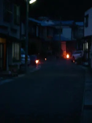 外に出ると、家の前で松明かしが見られました。
