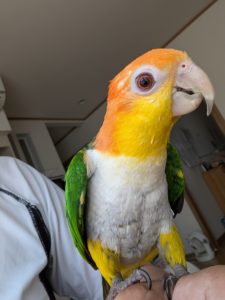 攻撃的になり手を差し伸べたりすると飛びついて嘴で噛みちぎります。